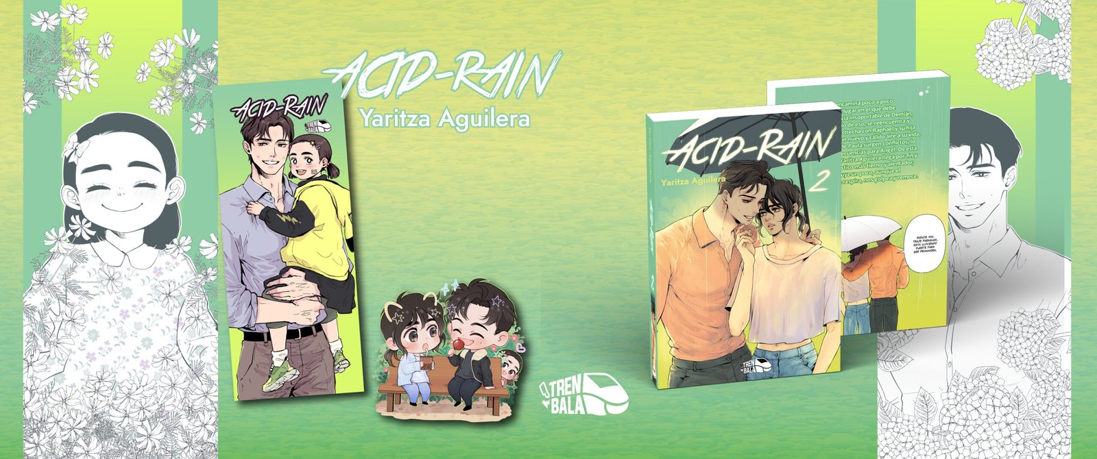 Angel, un estudiante de fotografía, comienza una relación con Eidan, profesor de Matemáticas. Tras compartir sus días en una tierna y apacible rutina, y enfrentar el rechazo y la discriminación, sus vidas dan un giro inesperado cuando salen a celebrar su cuarto aniversario. Totalmente desamparado, Angel intentará continuar con su vida y reponerse mientras transita de trabajo en trabajo, buscando un futuro en que pueda encontrar algo de amor y paz. Así Acid-Rain, primer manga en solitario de Yaritza Aguilera, nos lleva por un camino espinoso y desolado, cuyo fondo es un atardecer lluvioso y dolorosamente nostálgico.